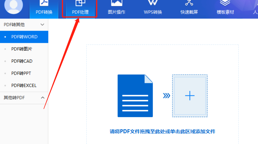 1.首先第一步我们打开软件之后需要点击界面上方的PDF处理这个功能模块,然后切换到PDF处理功能界面中。