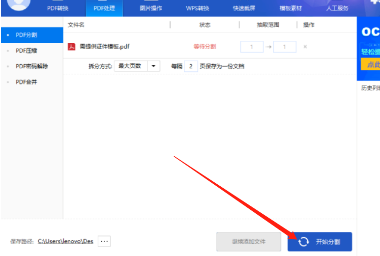 5.设置完成之后最后一步我们只需要点击右下角的开始分割这个功能按钮就可以开始分割文件的操作了。