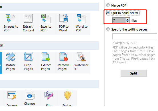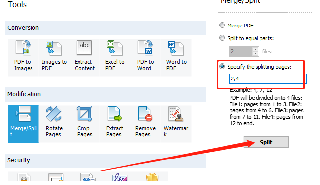 6.另外也可以选择从指定的页面进行分割,我们在输入框中输出指定的分割页面页码之后点击下方的Split按钮就可以分割了。