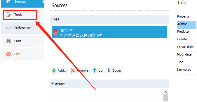 3.将文件成功添加进来之后,下一步就是在界面的左边点击Tools切换到操作工具界面。