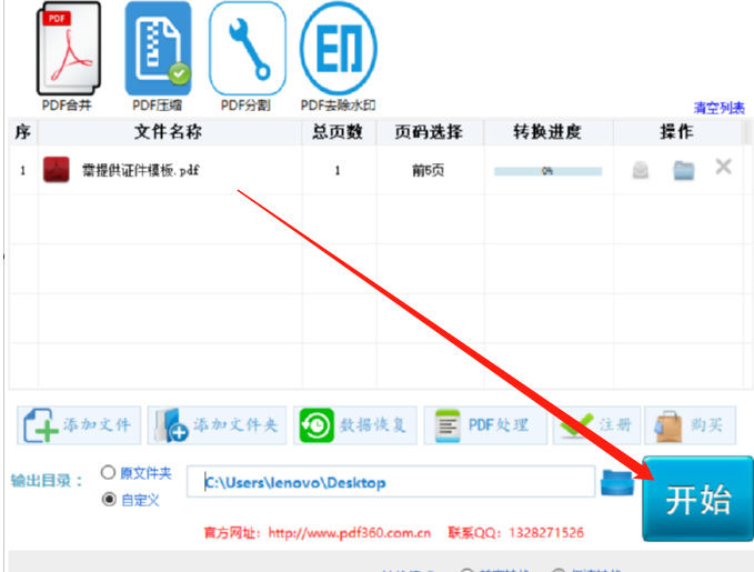 5.最后一步我们在设置好压缩文件的输出路径之后就可以点击软件界面右下角的开始按钮来开始压缩PDF文件的操作了。