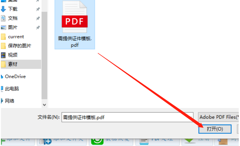 3.打开添加文件的按钮之后我们在出现的界面中找到想要压缩的那一个PDF文件,选中之后点击打开按钮。