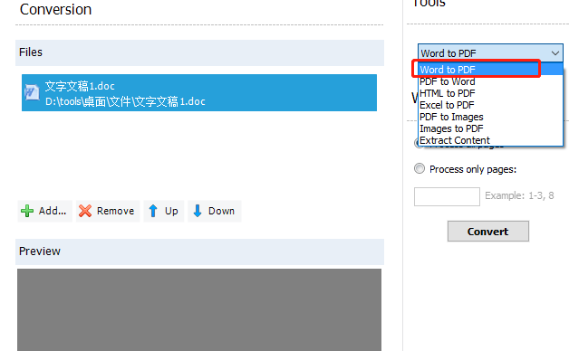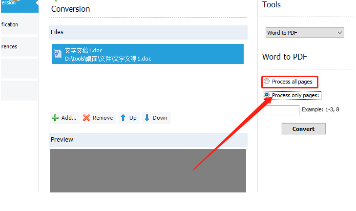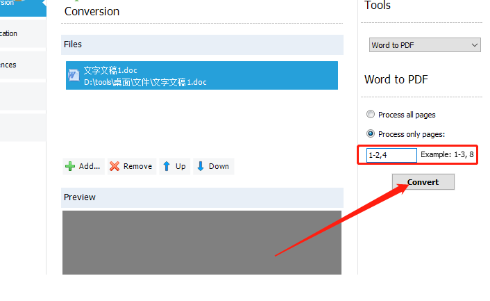 5.如果用户选择指定页面的话需要在界面中的方框内输入要转换的页面页码,输入完成之后点击下方的Convert按钮就可以开始转换了。
