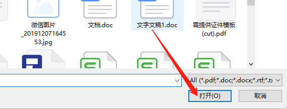 2.点击这个按钮之后会打开选择文件的界面,然后我们在界面中找到要转换的Word文件选中之后点击打开按钮。