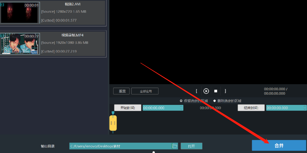 4.当文件成功添加到软件界面之后,我们就可以点击右下角的合并这个功能按钮来开始合并视频的操作了。