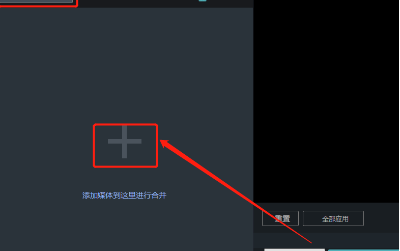 2.进入到合并功能之后的界面如下图所示,我们点击导入媒体按钮和界面中间的加号都可以添加要合并的视频。