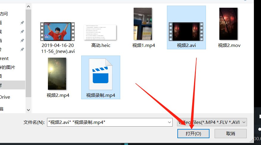 3.点击添加之后在打开的界面中选中要合并的几个视频文件,然后点击下方的打开按钮即可将它们添加到软件中。