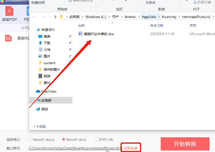 5.等待一会软件的进度显示转换完成之后,点击下方的打开目录按钮可以打开转换之后的文件所在的位置进行查看转换文件。