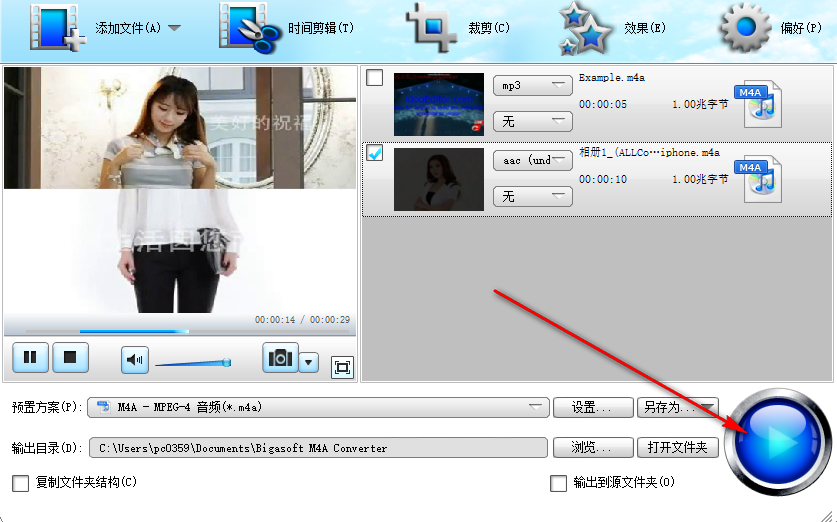 Bigasoft M4A Converter时间剪辑使用方法