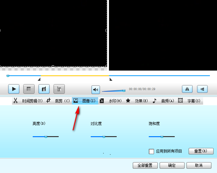6、这里是对图像的质量设置,可以在这里设置亮度、对比度、饱和度,可以应用到全部项目
