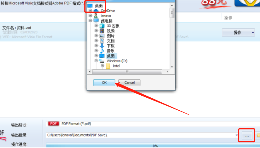 4.文件格式设置完成之后在输出目录后面点击三点按钮,然后在出现的界面中可以选择文件的输出目录,根据自己的需求设置即可。