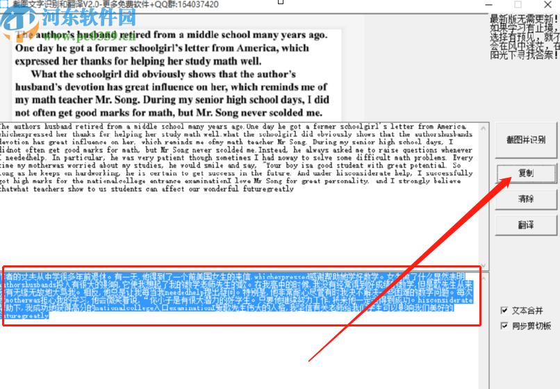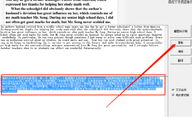 5.最后我们只需要在界面下方选中翻译之后的文字,然后点击界面右边的复制这个功能按钮就可以将翻译的文字内容复制下来使用了。