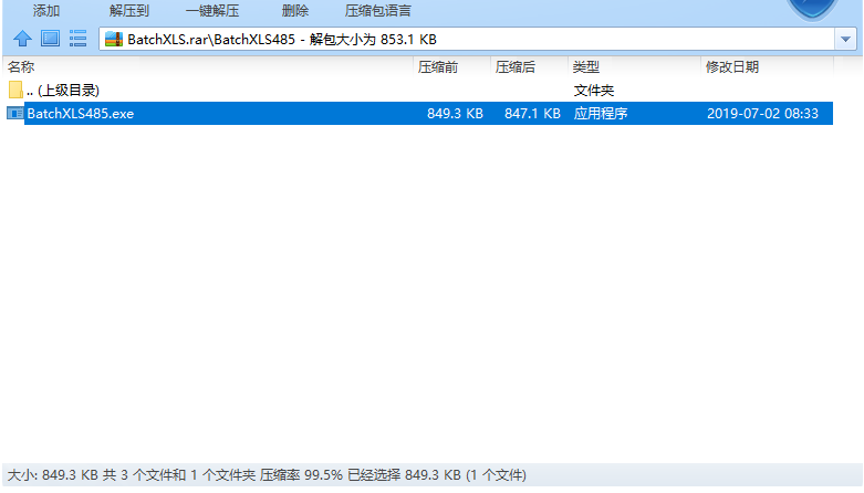 1.软件下载完成之后,我们首先需要在下载好的压缩包中找到名为“BatchXLS485.exe”的应用程序,双击之后即可进入软件的安装界面。