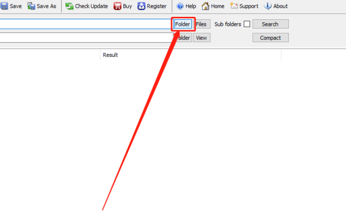 3.点击打开按钮之后,下一步就是在软件主界面中点击Folder按钮,如下图中所示,点击这个文件夹按钮之后在出现的界面中可以选择文件压缩之后的保存位置。