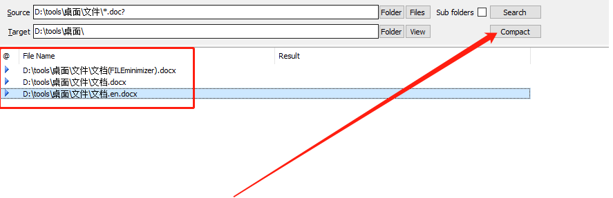 5.最后等到这些Word文件全部被扫描出来之后,我们点击界面右上方的Compact这个按钮即可开始批量压缩查找到的这些Word文件。