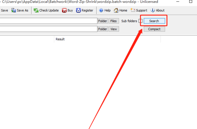 4.设置好文件压缩之后的保存位置之后,我们点击界面右上方的Search这个查找按钮,点击之后即可查找选择的文件夹中所有的Word文件。
