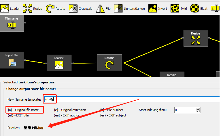 5.小编使用“{O}”这个规则,表示在文件名称的后面添加修改,小编就以这个规则为例来跟大家演示,在后面输入想要添加的名称内容,在左下方可以预览重命名之后的效果。