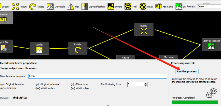 6.最后一步我们根据自己的需求来设置好重命名的规则之后,点击界面下方的Run the process这个功能按钮就可以开始进行批量重命名操作了。