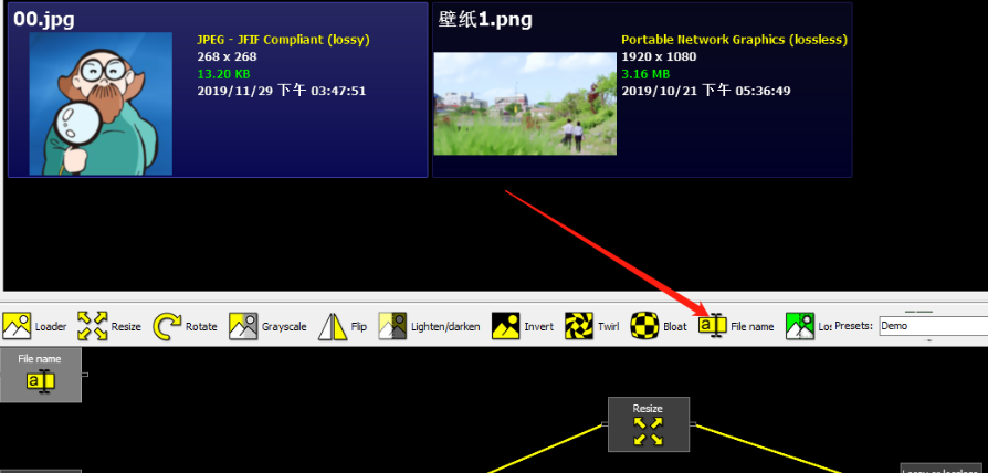 3.点击打开按钮之后选择的图片就成功添加到界面中了,然后我们在功能界面中找到File name这个功能按钮,找到之后点击它。