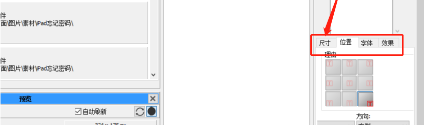 4.点击水印文本这个功能之后我们在界面右边就可以输入水印的文本内容了,然后可以调整文字水印的尺寸、位置等参数。