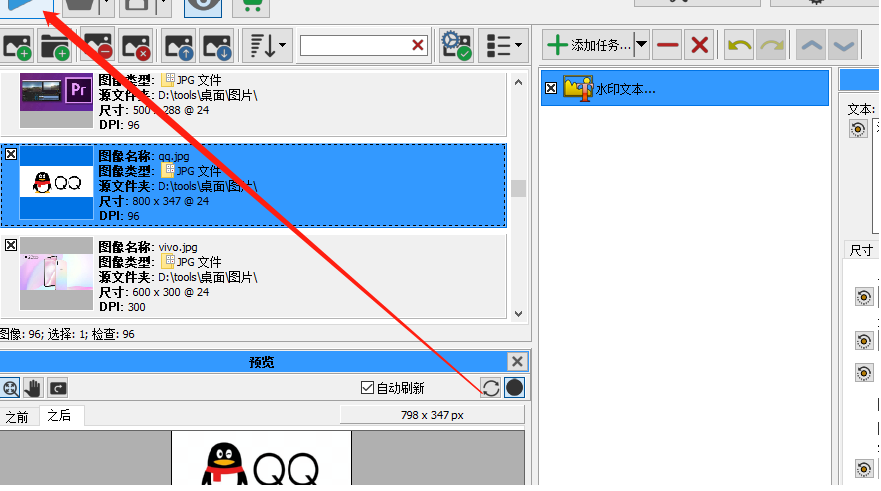 6.最后我们对水印的效果满意之后点击界面左上角的开始按钮就可以开始批量给图片添加水印了,如下图中所示。
