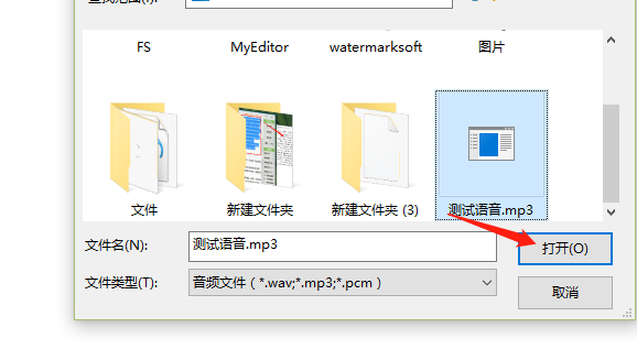 2.点击选择文件按钮之后紧接着会打开一个选择文件的界面,在界面中我们找到目标语音文件并选中之后点击打开按钮。