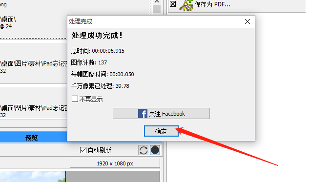 6.等待处理完成之后我们会看到软件返回的一个处理结果,其中可以看到总共处理了多少图像以及花费的时间。