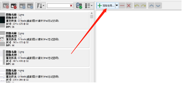 3.点击确定按钮之后等待一小会所有的图片就被加载到软件界面中了,然后我们点击右上角的添加任务这个按钮。