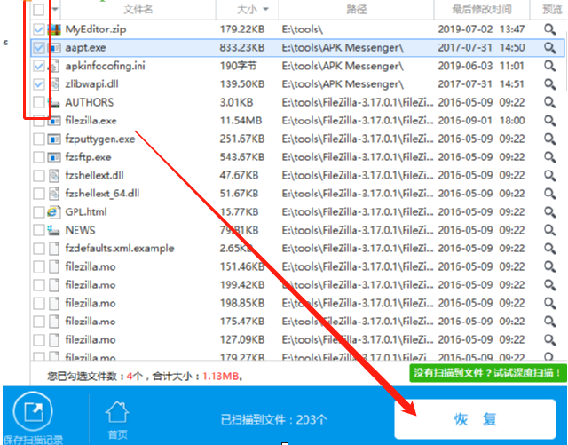 5.最后我们只需要在界面中找到并勾选要恢复的文件之后,点击右下角的恢复这个功能按钮就可以恢复了。