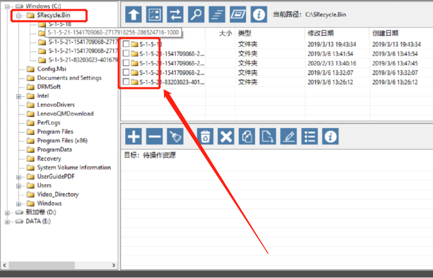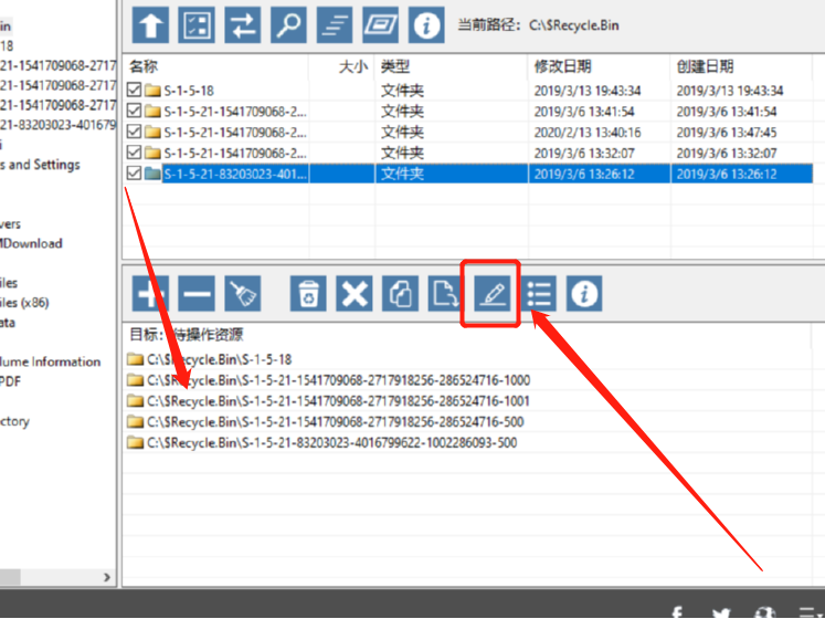 2.勾选方框之后文件夹就被添加到待操作资源这个界面中了,然后我们在操作功能中找到铅笔图标,也就是重命名文件的功能图标,找到之后点击它。