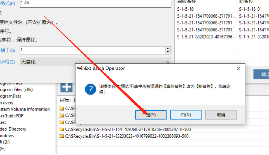 5.点击确定按钮执行操作之后在界面中会出现一个询问我们是否确定执行重命名操作的窗口,点击窗口中的是按钮即可开始重命名。