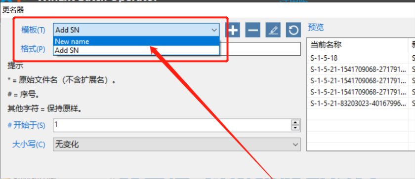 3.点击重命名功能图标之后就打开了重命名文件的功能界面了,在模板选项中我们可以选择重命名文件的模板,根据个人的需求选择即可。