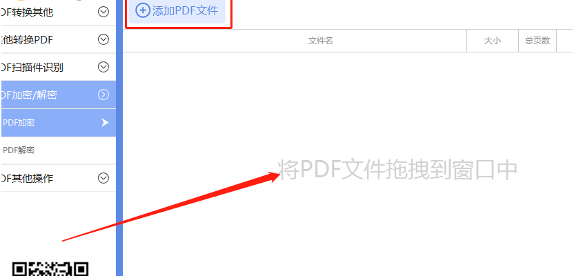 2.选中PDF加密功能之后切换到这个功能界面,然后可以点击界面中的添加PDF文件这个功能按钮。