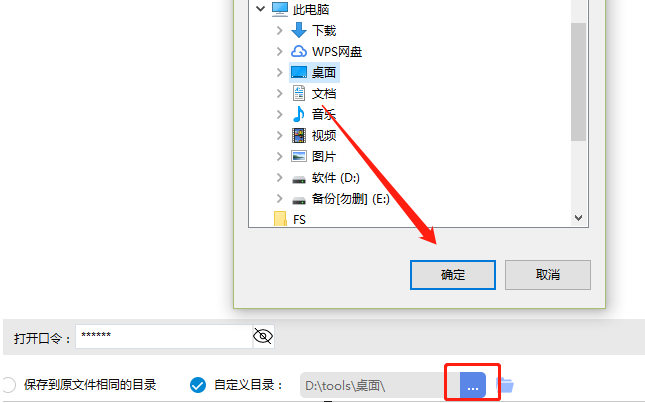 5.设置好密码之后在保存目录这里可以自定义保存目录,点击三点图标之后在出现的界面中自定义选择保存目录之后点击确定。