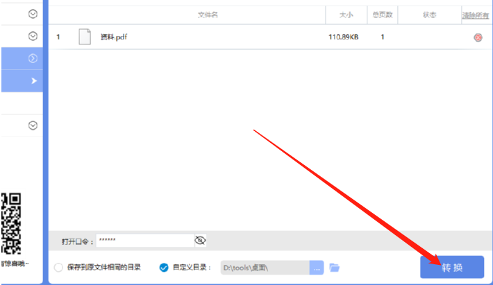 6.最后一步设置好密码和保存目录之后就可以点击界面右下角的转换这个功能按钮开始加密转换了。