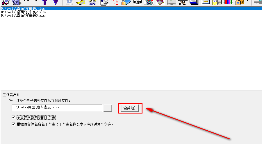 4.之后我们要合并的表格文件就载入到软件中了,这时看到界面上方的功能区域,找到合并操作这一个图标然后点击进去。