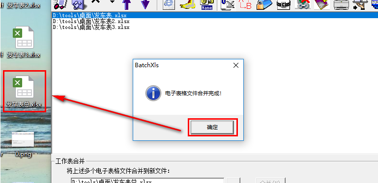 8.点击合并之后软件就会自动开始合并操作了,合并完成之后会返回一个操作结果给我们,点击确定以后可以到桌面的保存文件中查看合并数据。