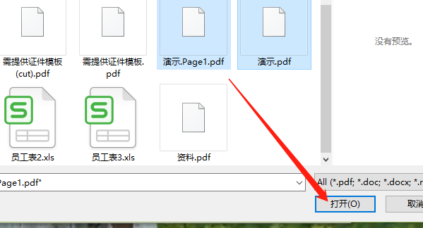 2.点击添加文件按钮之后会出现让我们选择需要合并的PDF文件的界面,然后我们选中之后点击打开按钮。