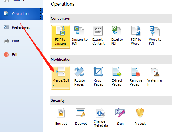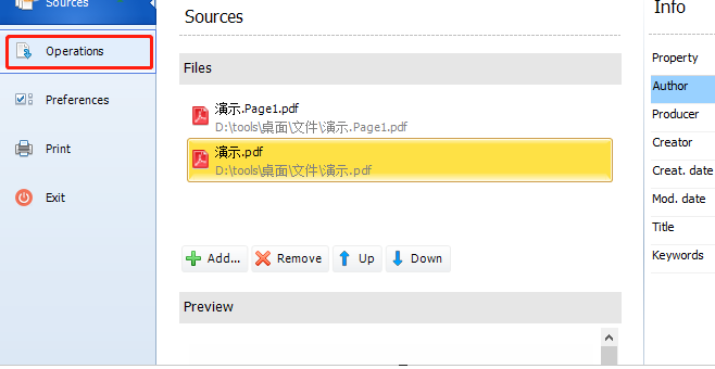 3.点击打开按钮之后下一步我们就可以在界面中看到添加进来的PDF文件了,然后我们需要点击界面左上角的Operations这个选项。