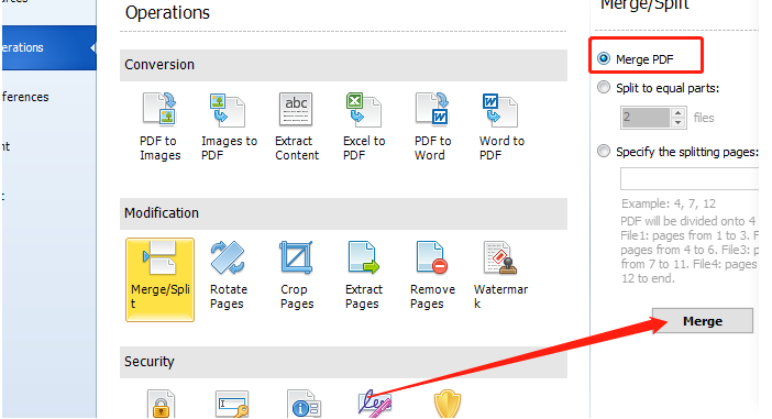 5.最后我们点击分割合并功能之后,在界面的右边选择Merge PDF这个选项,然后点击下方的Merge这个功能按钮就可以合并PDF文件了。