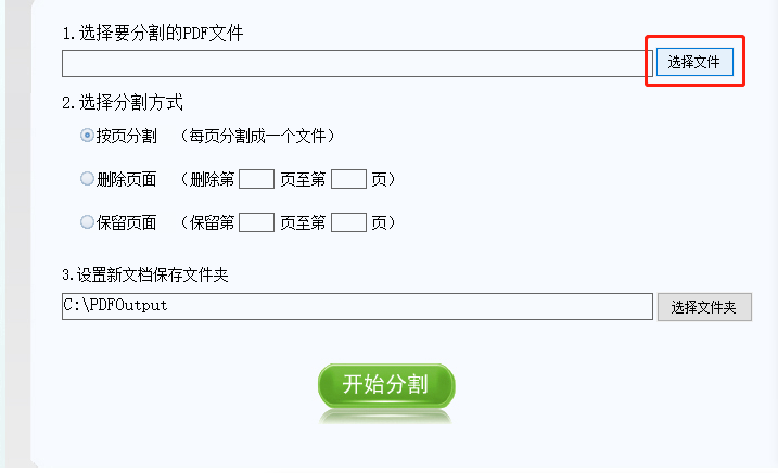 2.进入到分割功能界面之后如下图中所示,然后我们在这个界面中点击选择文件这个功能按钮。