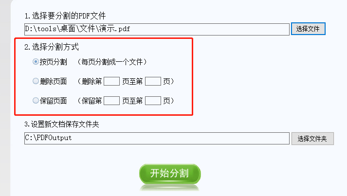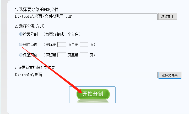 6.最后一步我们在选择好分割方式和文档保存的文件夹之后就可以点击界面下方的开始分割这个功能按钮来开始分割操作了。