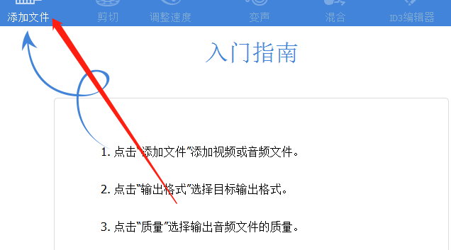 2.进入到格式转换这个功能界面之后,我们需要点击界面左上角的添加文件这个功能按钮来添加要转换的音频文件。