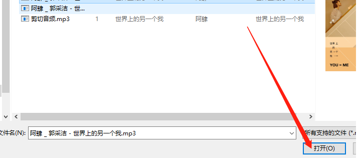 3.点击添加文件按钮之后下一步在出现的界面中选择目标音频文件,选中之后点击打开按钮。