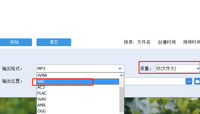 4.点击打开按钮之后文件就添加成功了,然后紧接着我们可以点击下方的输出格式这个功能选项来选择转换的AAC音频格式。