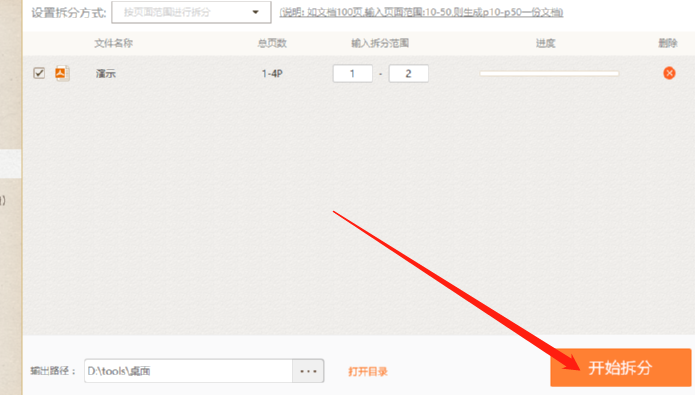 5.设置好输出路径之后我们就可以回到主界面中,然后点击界面右下角的开始拆分这个功能按钮来开始拆分PDF文件了。