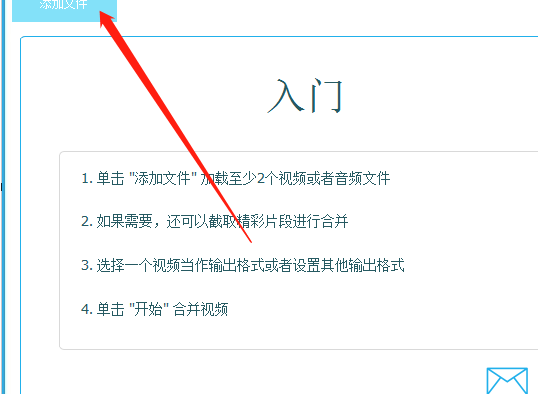 2.进入到合并视频的功能界面之后,下一步我们需要在界面的左上角点击添加文件这个功能按钮,点击添加文件之后即可添加要合并的视频。