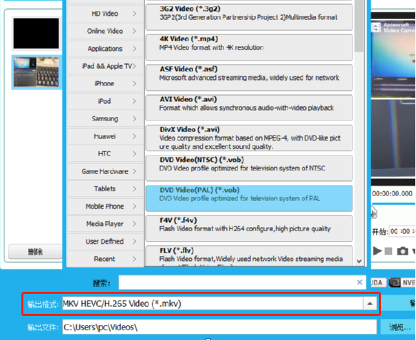 4.成功添加视频文件之后,下一步我们可以点击下方的输出格式来选择合并之后的文件要输出的格式。