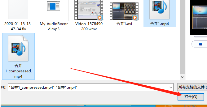 3.下一步就是在出现的界面中,选中要合并的视频文件之后点击界面右下角的打开按钮来将它们添加到软件中。