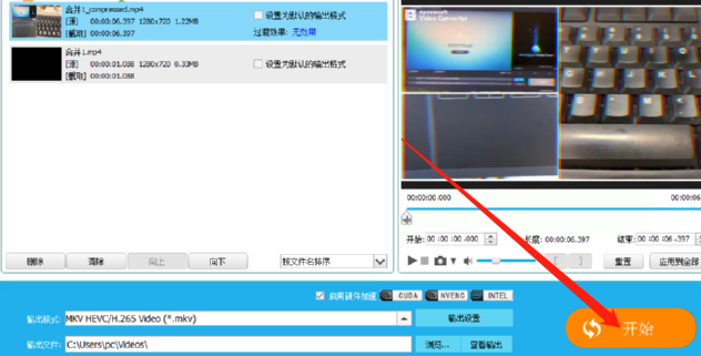 6.最后等到我们调整好合并视频的顺序、设置好合并视频的输出格式之后,只需要点击界面右下角的开始这个功能按钮就可以了。